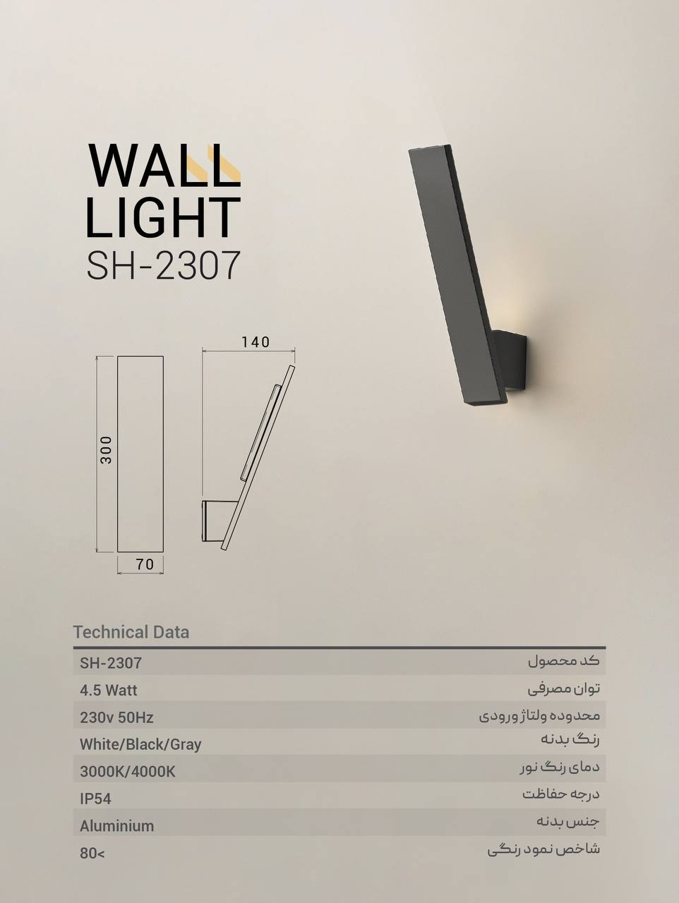 چراغ دیواریSH-2307-وات شعاع4.5وات
