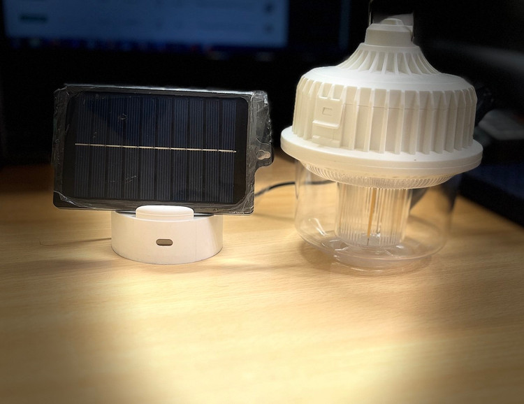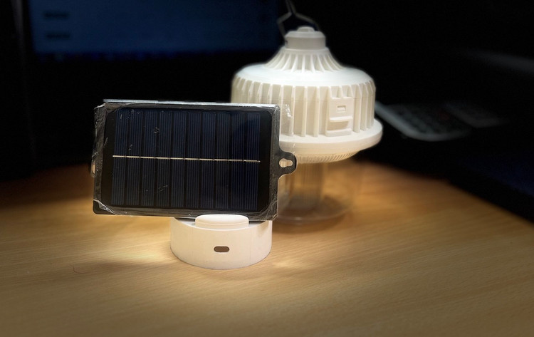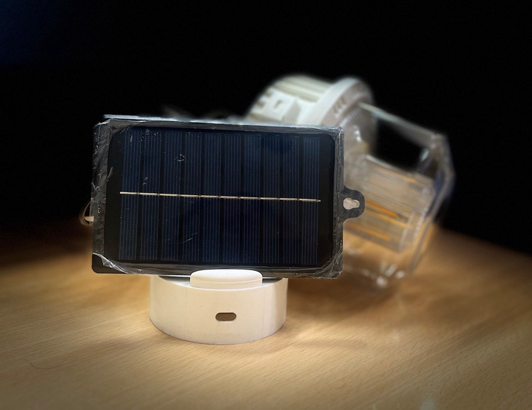 چراغ کمپی 12وات قلاب دار با شارژ سولار مجزا بدنه سفید مناسب برای سفر اتومبیل و خانه قابلیت شارژ با کابل تایپ سی تور بسبار دالی و قیمت مناسب